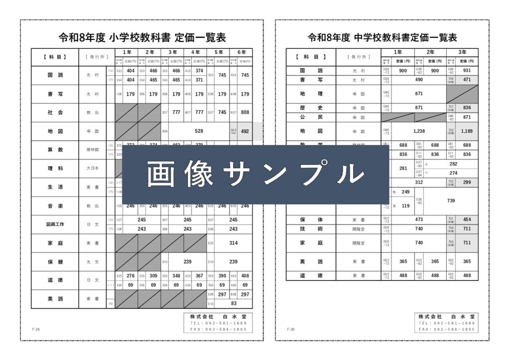 * R8年度 小学校 教科書 価格表(非課税)*